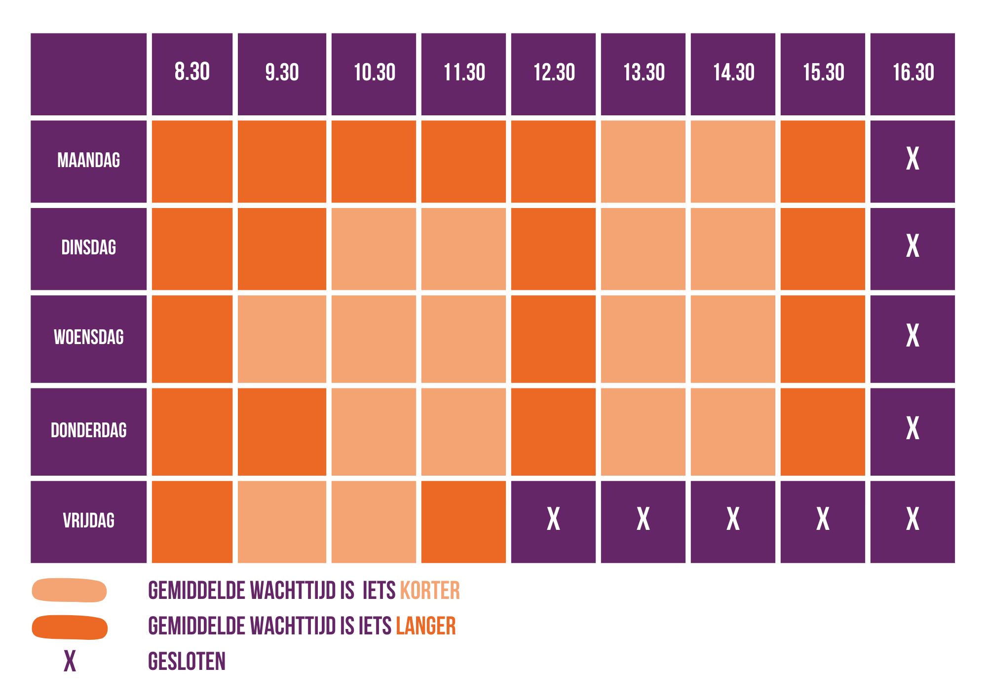 Wij werken maandag t/m met donderdag van 08.30 tot 16.30 uur en op vrijdag van 08.30 tot 12.00 uur. Dit nummer belt u ook voor spoedzaken buiten openingstijden.